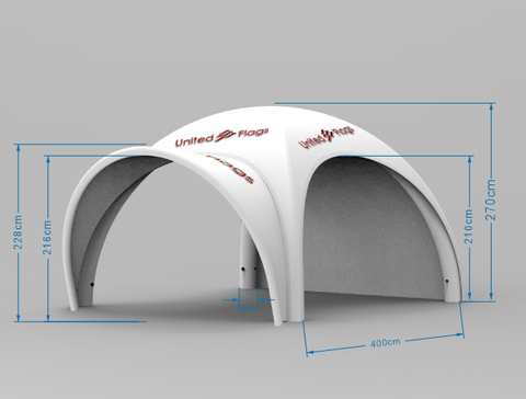 The United Flags inflatable tent offers durable, weather-resistant protection, perfect for outdoor events, galas, trade shows, markets in any environments.