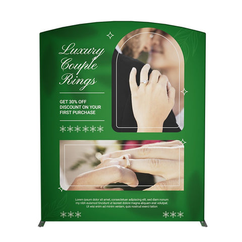 This 10x15ft trade show booth features a unique, clean, and modern design. It includes 1 arch-top banner stand, 2 straight tension fabric display, 2 modular tables, 2 counters, 4 LED lights, and 2 TV racks, making it ideal for brand displays, customer reception, and business meetings. Perfect for various trade shows and industry events, it helps showcase your brand and expand your business.