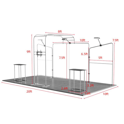 This 10x20ft trade show booth includes 2 slanted top displays, 1 backdrop, 1 L-shaped display, 2 counters, and 3 LED lights. Designed for maximum visibility, the three displays paired with three 40W LED lights create a striking visual effect that captures attention. The two counters provide a space for discussions, product demonstrations, or promotional materials, ensuring a seamless experience for both exhibitors and attendees. This versatile booth is perfect for trade shows, product launches, and corporate events.
